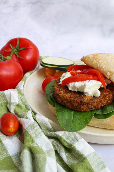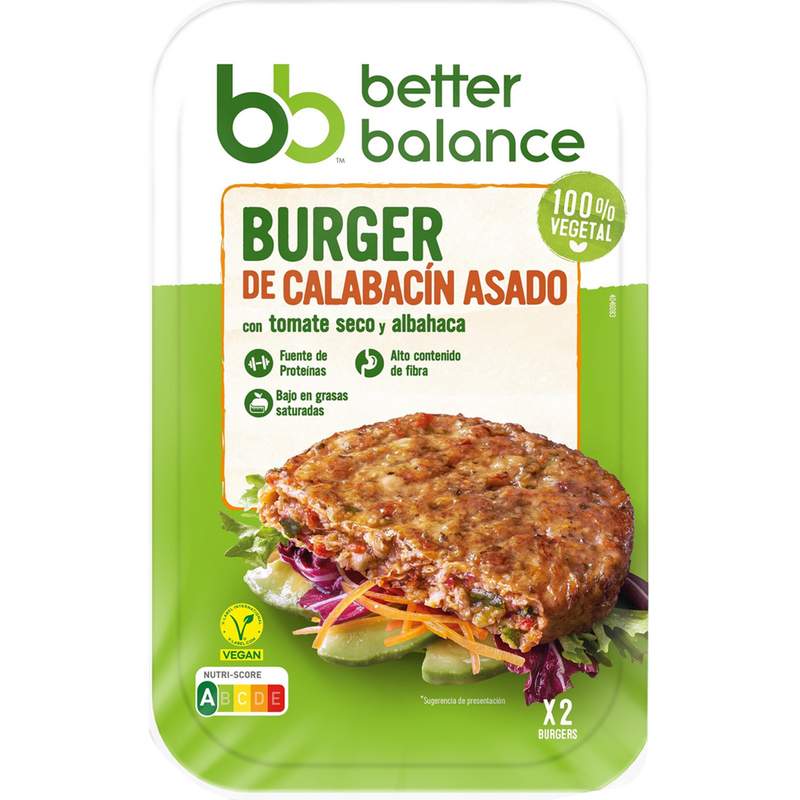 Hamburguesa de calabacín asado, tomate seco y albahaca, con todo el sabor mediterráneo y una textura suave que la hace irresistible. Rica en proteínas, saludable y lista para preparar, es la opción vegetal perfecta para disfrutar en cualquier momento, a tu manera.